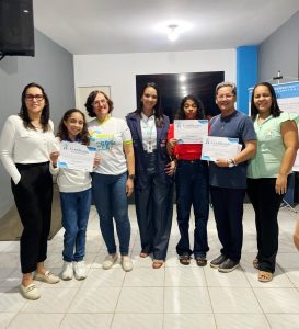 Durante a abertura, foi realizada a entrega da premiação do concurso de redação, promovido em parceria com a Secretaria Municipal de Educação. A ação buscou envolver os estudantes na reflexão sobre práticas de higiene, segurança alimentar e cuidados com o meio ambiente, valorizando a participação da juventude nas políticas públicas de saúde.