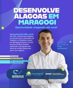 A Prefeitura de Maragogi, em parceria com a Secretaria Municipal de Trabalho, recebe nesta quinta-feira (30), a partir das 10h, a ação promovida pela Desenvolve Alagoas, que será realizada no centro do município e na orla de Barra Grande. A programação tem como objetivo ampliar o acesso da população a informações e oportunidades de financiamento voltadas ao fortalecimento da economia local.